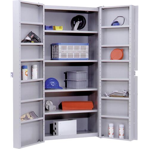 - Four reinforced adjustable main shelves are complemented by six adjustable mini shelves in each 4″ deep hinged door for a capacity unmatched by any other cabinet
