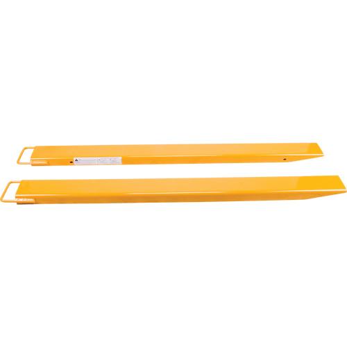 - Fork Extension Disclaimer: Fork extensions are lift truck attachments that increase the fork’s effective length for handling oversized uniformly distributed loads. When installed, fork extensions influence the truck’s capacity. Modifications and additions to the lift truck that affect capacity or safe operation shall not be performed without the written approval of the forklift manufacturer. Where such modifications and additions are performed, capacity, operation and maintenance instruction plates, tags or decals shall be changed accordingly. A pre-use examination shall take place in accordance with CSA safety standard for lift trucks. We will not be held responsible for any loss or damage or misuse that this product has or may have caused.
