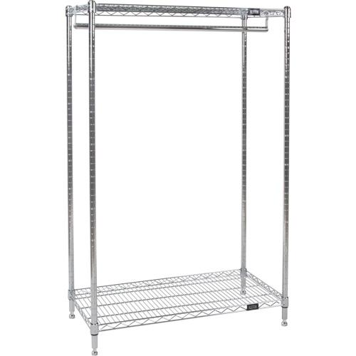 Stationary garment rack with adjustable feet to compensate for surface irregularities